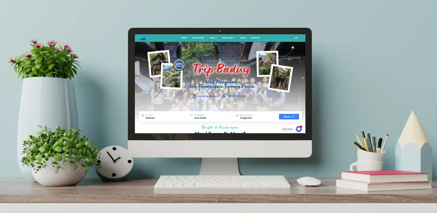 Sebelum kerjasama dengan Digital Kreatif, website Wuki Travel masih tampil berantakan. Desain kurang menarik, loading lambat, dan tidak responsive. Akibatnya, banyak calon wisatawan yang batal booking karena pengalaman pengguna yang buruk. Website lebih terlihat seperti brosur online daripada platform travel agen.
