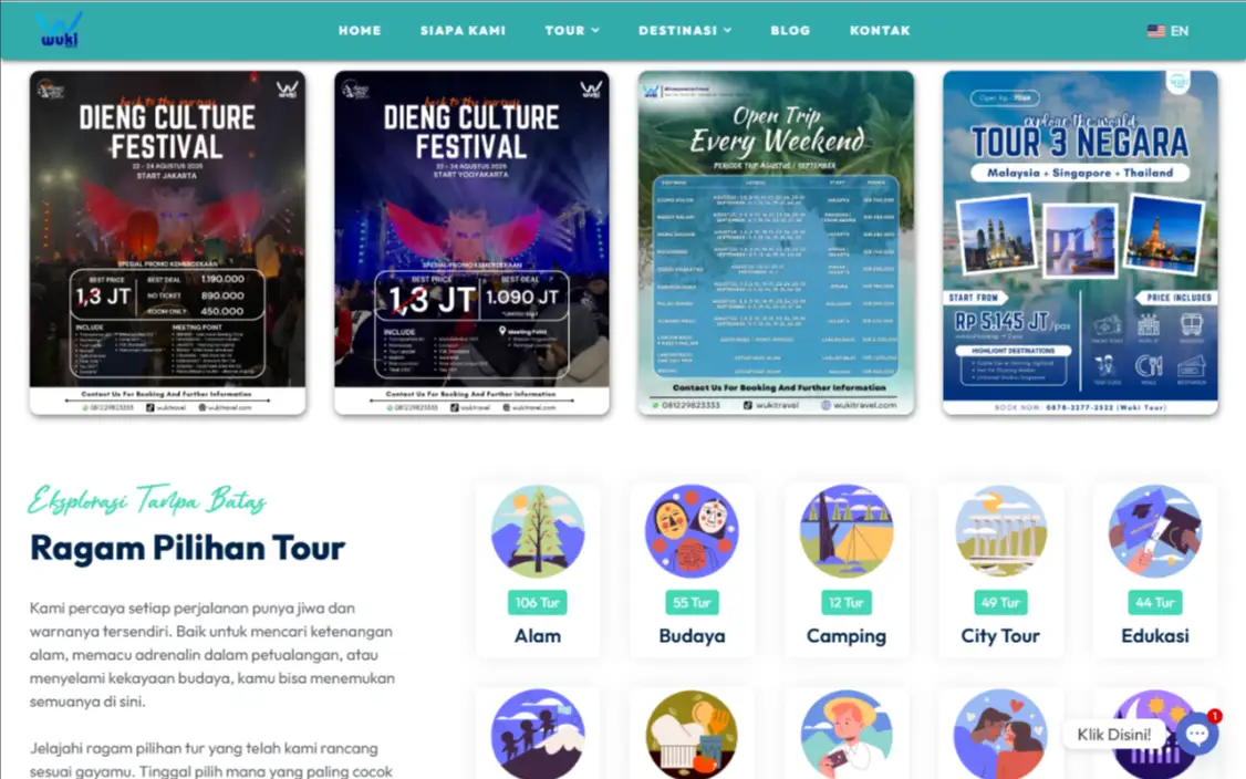 Dengan multi bahasa, dan SEO kuat, Wuki Travel lebih siap bersaing di pasar global.