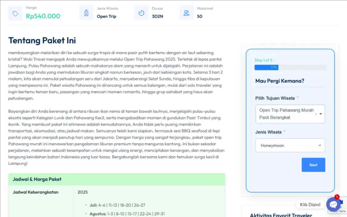 Struktur navigasi sederhana membuat pengunjung lebih lama mengeksplorasi paket wisata yang ditawarkan.